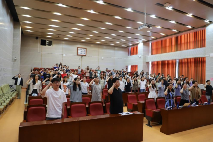 专题辅导结束后,全体毕业生党员在bat365中文官方网站学术型硕士研究生第一党支部尹燕斌同志的带领下重温入党誓词。