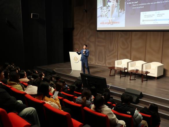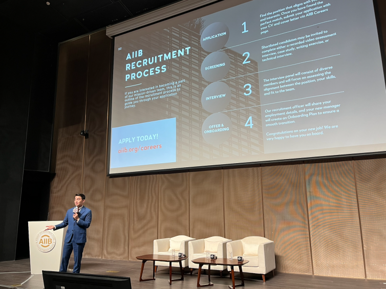 亚投行高级人力资源官布莱恩·卡洛·伊波利托(Brian Carlo Hipolito)为参访师生介绍了亚投行的职业发展项目以及组织文化,就如何申请亚投行职位、如何规划职业路径与学生进行了深入的交流。布莱恩欢迎我校优秀师生申请参与亚投行相关职业发展项目。